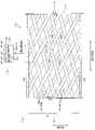 図6(a)、(b)は、補強体を編組体とした場合の中間層の構成を説明する図であり、補強部の一部を縦断面にて示した模式的平面図である。図6(a)では図5(a)の左側と同様の方法で外層と中間層が描画され、図6(b)では図5(a)の右側と同様の方法で各層と中間層が描画されている。FIGS. 6(a) and 6(b) are diagrams for explaining the configuration of the intermediate layer when the reinforcing body is a braided body, and are schematic plan views showing a part of the reinforcing portion in longitudinal section. In FIG. 6(a), the outer layer and the intermediate layer are drawn by the same method as the left side of FIG. 5(a), and in FIG. 6(b), each layer and the intermediate layer are drawn by the same method as the right side of FIG. 5(a). It is