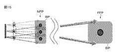 一方、図20Cにおいて、ラインLNAは中央のビームプロファイルBPのレーザ強度を示し、ラインLNEは中央のビームプロファイルBPに対して左下側のビームプロファイルBPのレーザ強度を示し、ラインLNFは中央のビームプロファイルBPに対して右下側のビームプロファイルBPのレーザ強度を示す。ラインLNGは、ラインLNA、LNE、および、LNFを重ね合わせたレーザ強度を示す。ラインLNFにより示されるように、BB-BB線の方向では、レーザ強度が0になってしまう極端な落ち込みがみられる。すなわち、一様照射のレーザビームが照射対象物1000に照射されていない箇所が存在してしまい、これにより測距の精度が悪化する虞がある。レーザ強度が0にならない場合であっても、重なり箇所のレーザ強度が所定未満(例えば、レーザ強度のピーク強度の25%未満)であると同様の問題が生じる。本技術は、係る点を改善することを目的の一つとする。On the other hand, in FIG. 20C, line LNA indicates the laser intensity of the central beam profile BP, line LNE indicates the laser intensity of the lower left beam profile BP with respect to the central beam profile BP, and line LNF indicates the central beam profile BP. The laser intensity of the lower right beam profile BP is shown with respect to BP. Line LNG shows the laser intensity superimposed with lines LNA, LNE and LNF. As indicated by the line LNF, there is an extreme drop in the direction of the BB-BB line where the laser intensity becomes zero. That is, there is a portion where the