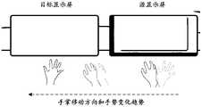 以“两指抓取实现应用分享”方案为例对手势动作展开介绍,如图4(b)所示,用户在开始抓取时,先张开五指(或拇指和食指张开并让其它手指弯曲靠向掌心),然后靠近源显示屏;抓取时,拇指和食指逐渐并拢,其它手指弯曲靠向掌心;在投屏过程中,并拢的两指从源显示屏位置移动到目标显示屏位置,然后逐渐靠近目标显示屏,并逐渐张开拇指和食指。Taking the "two-finger grasping to achieve application sharing" scheme as an example, the gesture action is introduced. As shown in Figure 4(b), when the user starts grasping, the user first opens five fingers (or thumb and index finger open and let other fingers open) (bent toward the palm), and then approach the source display; when grasping, the thumb and index finger are gradually brought together, and the other fingers are bent toward the palm; during the projection process, the two fingers moved together from the source display position to the target display screen position , then move closer to the target display and gradually open your thumb and forefinger.