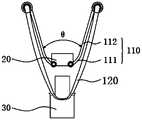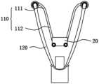 在一实施例中,如图6所示,夹合臂120大致为具有开口的线环结构。例如,夹合臂120可以是镍钛丝绕成的具有开口的线环。支撑臂110与夹合臂120连接的一端弯曲或卷绕而包住夹合臂120,以实现支撑臂110与夹合臂120可转动连接。这种连接方式是通过支撑臂110和夹合臂120自身的结构相互配合,使得在不使用转轴、销钉等连接件的情况,支撑臂110和夹合臂120可以相对枢转。这种枢转连接方式,减少了转轴、销钉等零件的使用,且可以提供灵活地转动。In one embodiment, as shown in FIG. 6 , the clamping