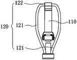 在一实施例中,每个夹合臂120的弯曲杆1212A和弯曲节段1211的连接部 位呈直杆状,使得两个夹合臂120的相互抵接的部位的面积较大,更为可靠地抵接。In one embodiment, the connecting portion of the bending
