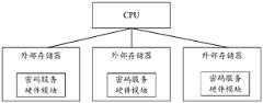 本领域技术人员容易想到多种技术手段,实现CPU通过发送密码服务调用指令的方 式,对外部存储器中的密码服务硬件模块进行调用。Those skilled in the art can easily think of a variety of technical means to realize that the CPU can call the cryptographic service hardware module in the external memory by sending a cryptographic service calling command.
