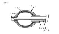 10・・・バルーンカテーテル、100・・・固定部材、101・・・バルーン、102・・・外筒シャフト、103・・・内筒シャフト、104・・・外筒シャフトの遠位端、105・・・内筒シャフトの遠位端、106・・・編組層、107・・・弾性材料、108・・・先端部材、109・・・内筒シャフトの太径部DESCRIPTION OF