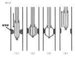 押込部材として、持ち手部分を備えた、外径が3段変化するステンレス鋼製のパイプを用意した。押込部材において、径が異なる部分を、長手方向における基端側からそれぞれ太径部、中間部及び細径部とした時、太径部は、外径が2.1mm、長さが60mmであり、中間部は、外径が1.8mm、長さが10mmであり、太径部から中間部に移行するテーパー長さは0.5mm、細径部は、外径が1.16mm、長さが805mmであった。また、押込部材としての最小内径は1.0mmであった。As a push-in member, a stainless steel pipe with a handle and an outer diameter that changes in three steps was prepared. In the pushing member, when the portions with different diameters are the large-diameter portion, the intermediate portion, and the small-diameter portion from the base end side in the longitudinal direction, the large-diameter portion has an outer diameter of 2.1 mm and a length of 60 mm. , the intermediate portion has an outer diameter of 1.8 mm and a length of 10 mm, and the taper length transitioning from the large diameter portion to the intermediate portion is 0.5 mm. was 805 mm. Also, the minimum inner diameter of the pushing member was 1.0 mm.