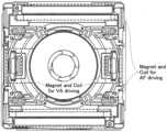 The lens unit is driven by voice coil motors for AF. A voice coil motor (VCM; also referred to as a voice coil actuator) is formed by an AF drive magnet (12) , an AF drive coil (16) , and an AF yoke (11) . The yoke may be made of a ferromagnetic material such as iron, and prevents magnetic flux leakage.