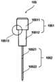 In the embodiment of the invention, the auxiliary-needle fixed structure 1051 comprises an auxiliary-needle slide block 10511 and an auxiliary-needle fixed block 10512. The diameter or width of the auxiliary-needle slide block 10511 is larger than that of the auxiliary-needle fixed block 10512, forming a convex surface 10513 toward the near end.