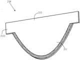 每片瓣叶210均包括瓣叶尾部211、密封条212和固定件213。瓣叶尾部211的外侧为突出结构,突出结构的外侧边缘与内层支架110的内侧壁连接。密封条212为弯折结构,密封条212的外侧连接瓣叶尾部211的内侧,密封条212的内侧所在的侧面与瓣叶尾部211所在的平面垂直,密封条212的另两个对侧面分别设置有固定端2121,固定端2121翻折并包裹有夹片214后形成固定件213,通过固定件213与第一连接部112固定连接。如图9所示,为密封条212未弯折状态下的瓣叶210,在密封条212的左右两侧面向外延伸形成固定端2121。如图10所示,夹片214的厚度优选0.1毫米-0.5毫米,夹片214上设置有至少一个夹片缝合孔2141,经夹片缝合孔2141将固定端2121经缝合线缝合并包裹住夹片214。Each