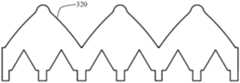 内缝合膜固定于内层支架110内侧及外缝合膜内侧。如图14所示的一种内缝合膜320结构,该内缝合膜320的近端呈锯齿结构,内缝合膜320可以通过支架缝合孔1112、瓣叶缝合孔1121和覆膜缝合孔1131经缝合线缝合于内层支架110内侧。The inner suturing membrane is fixed on the inner side of the