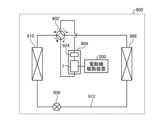 暖房運転時には、実線矢印で示すように、冷媒が圧縮機構924で加圧されて送り出され、四方弁902、室内熱交換器906、膨張弁908、室外熱交換器910及び四方弁902を通って圧縮機構924に戻る。冷房運転時には、破線矢印で示すように、冷媒が圧縮機構924で加圧されて送り出され、四方弁902、室外熱交換器910、膨張弁908、室内熱交換器906及び四方弁902を通って圧縮機構924に戻る。During heating operation, as indicated by solid line arrows, the refrigerant is pressurized by the