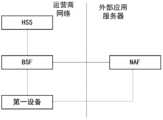 本申请实施例中,可选地,在步骤S310,结合图2,第一设备与BSF单元执行身份认证,生成第一会话密钥;在步骤S320,第一服务器为NAF,第一设备向NAF发送第一业务请求,第一业务请求中包括终端的终端标识,NAF根据不同终端的终端标识,为相应的终端生成对应的第一终端会话密钥。In this embodiment of the application, optionally, in step S310, referring to Figure 2, the first device and the BSF unit perform identity authentication to generate a first session key; in step S320, the first server is NAF, and the first device sends the A first service request is sent, and the first service request includes a terminal identifier of a terminal, and the NAF generates a corresponding first terminal session key for a corresponding terminal according to the terminal identifiers of different terminals.