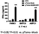 结果如图6所示。GAS6-CAR-T杀伤PANC1和ASPC1后的细胞因子明显增加,BXPC3无明显变化。结果表明,GAS6-CAR-T细胞对肿瘤细胞的杀伤作用伴随着IFNγ释放,提示该杀伤作用与IFNγ释放有关。The result is shown in Figure 6. After GAS6-CAR-T killed PANC1 and ASPC1, the cytokines increased significantly, but BXPC3 did not change significantly. The results showed that the killing effect of GAS6-CAR-T cells on tumor cells was accompanied by the release of IFNγ, suggesting that the killing effect was related to the release of IFNγ.