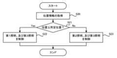 位置情報取得部11は、対象Tの位置を示す情報を取得する。照明制御部12は、対象Tが所定位置Oより所定方向に沿った一方側に位置する場合は、第1照明I1が対象Tを第1光L1で照明するように、第1照明I1を制御する。照明制御部12は、対象が所定位置Oより所定方向に沿った他方側に位置する場合は、第2照明I2が対象Tを第2光L2で照明するように、第2照明I2を制御する。例えば、図1に示す例では、照明制御部12は、対象Tが所定位置OよりZ軸方向に沿った-Z側に位置する場合は、第1照明I1が対象Tを第1光L1で照明するように、第1照明I1を制御してもよい。例えば、図1に示す例では、照明制御部12は、対象が所定位置OよりZ軸方向に沿った+Z側に位置する場合は、第2照明I2が対象Tを第2光L2で照明するように、第2照明I2を制御してもよい。