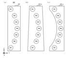 [3-6:情報処理システムSYS3の技術的効果]FIG. 13 illustrates an illumination device D3'' having a configuration in which a plurality of rows of illuminations I are provided in which seven element illuminations EI are lined up in a column direction (for example, in the X-axis direction). Each of the multiple rows of illumination I may be referred to as a row illumination RI. FIG. 13 is a cross-sectional view of the illumination device D3'' viewed from above. As shown in FIG. 13(b), the element illumination EI closer to the center in the X-axis direction may be placed on the plus side in the Y-axis direction. As shown in FIG. 11, since the object T passes through a region (for example, a passing lane) on the positive side in the Y-axis direction of the illumination device D3, the closer the element illumination EI is to the center in the X-axis direction, the more the object T passes through. It may also be located further away from the area. In other words, the closer the position of the elemental illumination EI is to the center in the row direction in which the plurality of elemental illuminations EI are lined up, the longer the distance between the elemental illumination EI and the region through which the object T passes may become. Alternatively, as shown in FIG. 13(c), the element illumination EI closer to the center in the X-axis direction may be arranged on the negative side in the Y-axis direction. In either case, the arrangement of the element illuminations EI may be different for each row.