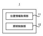 図2を参照しながら、第1実施形態における情報処理装置1の構成について説明する。図2は、第1実施形態における情報処理装置1の構成を示すブロック図である。図2に示すように、情報処理装置1は、位置情報取得部11と、照明制御部12とを備えている。The configuration of the