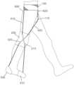 본 발명의 경우 제1와이어(410)가 중간 스트랩(200)에 고정되는 것이 아니라 제1와이어(410)가 제1쉬스 부재(510)를 경유하여 중간 스트랩(200)에 대해 상대 이동하면서 움직이도록 구성된 점에 중요한 특징이 있다. 제1와이어(410)가 제1쉬스 부재(510)를 슬라이딩하면서 움직이므로, 제1와이어(410)는 사용자의 고관절과 발목의 움직임에 동기하여 자연스럽게 작동하는 것이 가능하다. 즉, 사용자의 움직임에 따라 허리 뒷부분과 무릎 관절 사이의 거리 및 무릎 관절과 발끝 사이의 거리가 변하더라도 중간 스트랩(200)은 제1와이어(410)의 길이나 움직임을 제한하지 않으면서 사용자의 움직임에 맞추어 발목이 접히는 것을 유도하게 된다. 제1쉬스 부재(510)는 제1와이어(410)가 사용자의 무릎 측면에서 이탈하지 않고 붙어 있는 상태를 유지하면서도 제1와이어(410)가 보행 보조 및 보행 유도 역할을 하는 것을 허용하게 된다. 특히, 앞에서 설명하고 도면에 도시한 것과 같이 제1쉬스 부재(510)가 제1와이어(410)의 연장 방향을 따라 기울어진 방향으로 중간 스트랩(200)에 고정되는 경우에, 이와 같은 제1와이어(410)의 작동을 효과적으로 유도할 수 있다.In the case of the present invention, the
