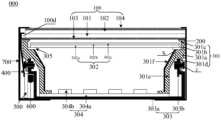 本申请实施例还提供了一种背光模组。如图12所示,图12是本申请实施例提供的一种背光模组的结构示意图。背光组件300可以包括:背光源304、框体301和光学膜片302。An embodiment of the present application also provides a backlight module. As shown in Figure 12, Figure 12 is a schematic structural diagram of a backlight module provided by an embodiment of the present application. The