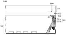 需要说明的是,上述实施例中使用某个结构的截面的最小宽度(或最小高度)是考虑了这个结构的截面的形状不是规则的形状的情况;可以理解的是, 若某个结构的截面是规则的形状,则这个结构的截面任一位置处的宽度均是相同的(或任一位置处的高度均是相同的),所述最小宽度(或最小高度)即为截面的宽度(或高度)。例如,当挡墙301c的截面为矩形时,这个挡墙301c的截面的任一位置处的宽度d1均是相同的,这个挡墙301c的截面的任一位置处的高度h也均是相同的。同样的,上述实施例中的某两个结构之间的最小距离是考虑了这些结构的表面不是平面的情况;可以理解的是,若这些结构的表面都是平面,则两个结构之间的任一位置处的距离均是相同的,所述最小距离即为两个结构之间的距离。例如,当支撑台301b靠近显示面板的一面为平面,且显示面板100靠近框体301的一面为平面时,支撑台301b和显示面板100之间任一位置处的距离H均是相同的。It should be noted that the use of the minimum width (or minimum height) of the cross-section of a certain structure in the above embodiments takes into account the situation that the shape of the cross-section of the structure is not a regular shape; it can be understood that if the cross-section of a certain structure is a regular shape, then the width at any position of the cross-section of this structure is the same (or the height at any position is the same), and the minimum width (or minimum height) is the width of the cross-section (or high). For example, when the cross-section of the