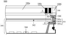 在一种可能的实现方式中,请参考图3和图5,图5是图3示出的显示模组在E出的局部放大图。背光模组300中的框体301可以包括:承载台301a、支撑台301b和挡墙301c。In a possible implementation, please refer to FIG. 3 and FIG. 5 . FIG. 5 is a partial enlarged view of the display module shown in FIG. 3 at E. The