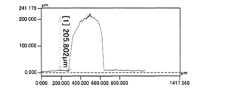 本例で得られた、セラミックス板上に接合されている線状金属層について、レーザー顕微鏡により線状金属層の幅方向に測定した高さプロファイルによれば、線幅はレーザービームの照射エリア径に概ね対応しており、金属層の厚さ(頂部高さ)は約74μmであった。[Example 13]
