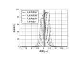 ここで、図18を参照して、バンドパスフィルタの「透過率の中心波長」を説明する。図18に、赤外線の波長[μm]に対する一例のバンドパスフィルタの垂直入射時(入射角度θ=0°)の透過率[%]の特性において、最大の透過率と、最大の透過率の50%の波長λ1,λ2と、が示されている。このバンドパスフィルタの透過率の中心波長は、波長λ1,λ2の中心の波長(=(波長λ1,λ2の和)/2)で定義される。Here, we will explain the "central wavelength of transmittance" of a bandpass filter with reference to Figure 18. Figure 18 shows the maximum transmittance and wavelengths λ1 and λ2 at 50% of the maximum transmittance in the transmittance [%] characteristics of an example bandpass filter at normal incidence (incident angle θ = 0°) relative to the wavelength [μm] of infrared light. The central wavelength of the transmittance of this bandpass filter is defined as the central wavelength of wavelengths λ1 and λ2 (= (sum of wavelengths λ1 and λ2) / 2).