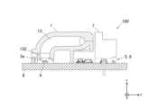 そして、+x方向側の導光部13は、軸方向が+y方向側から-y方向側に直線状に延在したあと、R状に曲がり、-z方向側に延在する。導光部13を通った赤外線は、光学フィルタ3及び受光部4に出射される。導光部13の赤外線の出射側の端部を出口部132とする。The