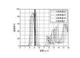 図16~図18を参照して、本発明に係る第2の実施の形態を説明する。図16は、従来のバンドパスフィルタの透過特性を示す図である。図17は、本実施の形態のバンドパスフィルタの透過特性を示す図である。図18は、一例のバンドパスフィルタの透過特性及び透過率の中心波長を示す図である。Second Embodiment