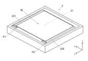 図4に示すように、光源2は、基板6の上面(+z側の面)上に実装されたMEMS(Micro Electro Mechanical Systems)型光源であり、例えばメンブレン構造のメンブレンMが形成されている。光源2は、+x方向側に設けられた電極231及びパッドP1と、-x方向側に設けられた電極232及びパッドP2と、を有する。As shown in FIG. 4, the