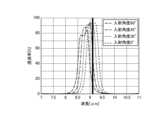 つぎに、図7~図12を参照して、光学フィルタ3と、光学式ガスセンサ装置100との特性を説明する。図7は、受光部4への光線入射角度分布を示す図である。図8は、ロングパスフィルタの透過特性を示す図である。図9は、ロングパスフィルタの透過率の角度依存性を示す図である。図10は、従来のバンドパスフィルタの透過特性を示す図である。図11は、従来のバンドパスフィルタの透過率の角度依存性を示す図である。図12は、複数種類のガスの吸収波長を示す図である。Next, the characteristics of the