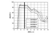 図16に示すように、従来のバンドパスフィルタは、赤外線の入射角度が大きくなるにつれて、R32の吸収スペクトルにおいて最大吸収を示す波長である9.1[μm]での透過率[%]がより低下していく。As shown in Figure 16, in a conventional bandpass filter, as the angle of incidence of infrared light increases, the transmittance [%] at 9.1 [μm], the wavelength showing maximum absorption in the absorption spectrum of R32, decreases further.