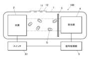 従来、非分散赤外線吸収方式(NDIR:Non Dispersive InfraRed)によるガスセンサが知られている。NDIRのガスセンサは、多くのガスが各々固有の赤外線波長を吸収する性質を利用して、検出対象のガスに赤外線を放射した時、どの波長がどれくらい吸収されたかを検出して、検出対象のガスの濃度を測るセンサである。例えば、赤外線の発光部及び受光部を備え、発光部及び受光部の光路上にある被検出ガスの濃度を検出するガスセンサである。 Conventionally, gas sensors using the non-dispersive infrared absorption method (NDIR: Non Dispersive InfraRed) are known. NDIR gas sensors take advantage of the property of many gases to absorb their own unique infrared wavelengths, and when infrared light is radiated to the gas to be detected, they detect which wavelengths are absorbed and to what extent, thereby measuring the concentration of the gas to be detected. For example, there is a gas sensor that has an infrared light emitter and receiver, and detects the concentration of the gas to be detected that is located in the optical path of the emitter and receiver.