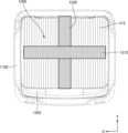 일 예시에 따른 보강 부재(1400)는, 도 18a에 도시된 바와 같이 제1 측면 완충부(1111) 및 제3 측면 완충부(1113)의 중심부에 배치되는 제1 보강 부재(1410) 및 제3 보강 부재(1430)를 포함할 수 있다. 환언하면, 보강 부재(1400)는 제1 측면 완충부(1111) 및 제3 측면 완충부(1113)에 의해 각각 둘러싸이도록 배치되는 제1 보강 부재(1410) 및 제3 보강 부재(1430)를 포함할 수 있다. 이때, 제1 보강 부재(1410) 및 제3 보강 부재(1430)는 제1 측면 완충부(1111) 및 제3 측면 완충부(1113)와 같이 일 방향, 예를 들어 제2 방향(Y 방향)을 따라 연장되도록 배치될 수 있다.According to an example, a reinforcing member (1400) may include a first reinforcing member (1410) and a third reinforcing member (1430) arranged at the center of the first side buffer portion (1111) and the third side buffer portion (1113), as illustrated in FIG. 18A. In other words, the reinforcing member (1400) may include the first reinforcing member (1410) and the third reinforcing member (1430) arranged to be surrounded by the first side buffer portion (1111) and the third side buffer portion (1113), respectively. At this time, the first reinforcing member (1410) and the third reinforcing member (1430) may be arranged to extend in one direction, for example, in the second direction (Y direction), like the first side buffer portion (1111) and the third side buffer portion (1113).