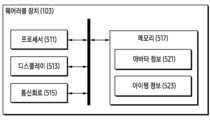 일 실시예에 따르면, 상기 인스트럭션들은, 상기 적어도 하나의 프로세서(511)에 의해 개별적으로 또는 집합적으로 실행될 시, 상기 웨어러블 장치(103)가, 상기 제2 상태에서 상기 제2 아바타를 표시하는 상기 아이콘에 기반하여, 상기 제2 아바타를 포함하는 상기 가상 환경을 표시하도록 야기할 수 있다. 상기 인스트럭션들은, 상기 적어도 하나의 프로세서(511)에 의해 개별적으로 또는 집합적으로 실행될 시, 상기 웨어러블 장치(103)가, 상기 제2 상태에서 상기 아바타들과 상이한 이미지를 표시하는 상기 아이콘에 기반하여, 상기 제2 소프트웨어 어플리케이션이 제공하는 아바타의 선택을 위한 화면을 표시하도록, 야기할 수 있다. 상기 이미지는, 상기 제1 소프트웨어 어플리케이션의 기본 이미지(default image)를 포함할 수 있다.In one embodiment, the instructions, when individually or collectively executed by the at least one processor (511), may cause the wearable device (103) to display the virtual environment including the second avatar based on the icon representing the second avatar in the second state. The instructions, when individually or collectively executed by the at least one processor (511), may cause the wearable device (103) to display a screen for selection of an avatar provided by the second software application based on the icon representing a different image from the avatars in the second state. The image may include a default image of the first software application.
