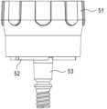 도 20 및 도 21에 도시된 바와 같이, 상단몸체부(51)에는 배출공(52)이 형성되며, 하단면 하부측으로 돌출되는 중심회전축(53)이 연결되어 진다.As shown in FIG. 20 and FIG. 21, a discharge hole (52) is formed in the upper body part (51), and a central rotation shaft (53) protruding toward the lower side of the lower surface is connected.