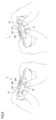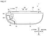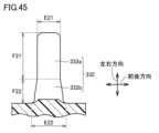 図45は、舌体の構成を示す一部断面模式図である。舌体332は、第2先端部332aと、第2根元部332bとを有している。第2先端部332aは、第2根元部332bに連なっている。第2先端部332aは、第2根元部332bよりも薄い。第2先端部332aは、左右方向に関して線対称である。第2根元部332bは、第2先端部332aから離れるにつれて厚みが大きくなる。第2根元部332bは、左右方向に関して線対称である。左右方向において、第2根元部332bの高さ(第2根元部高さF22)は、第2先端部332aの高さ(第2先端部高さF21)よりも小さい。FIG. 45 is a schematic partial cross-sectional view showing the structure of the tongue body. Thetongue body 332 has asecond tip portion 332a and asecond root portion 332b. Thesecond tip portion 332a is connected to thesecond root portion 332b. Thesecond tip portion 332a is thinner than thesecond root portion 332b. Thesecond tip portion 332a is line-symmetrical in the left-right direction. Thesecond root portion 332b becomes thicker as it moves away from thesecond tip portion 332a. Thesecond root portion 332b is line-symmetrical in the left-right direction. In the left-right direction, the height of thesecond root portion 332b (second root portion height F22) is smaller than the height of thesecond tip portion 332a (second tip portion height F21).