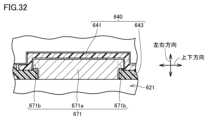 図32は、図30のXXXII-XXXII線に沿った一部断面模式図である。図32に示される断面は、前後方向に垂直である。第1ヨーク部材671は、ヨーク本体部671aと、2つのフランジ部671bとを有している。2つのフランジ部671bは、上下方向においてヨーク本体部671aの両側に設けられている。2つのフランジ部671bが第3ハウジング643の内壁面に当接することにより、第1ヨーク部材671が磁石用貫通孔674から抜け出すことを防止する。第2ヨーク部材672は、第1ヨーク部材671と実質的に同じ構成を有している。FIG. 32 is a partial schematic cross-sectional view taken along line XXXII-XXXII in FIG. 30. The cross section shown in FIG. 32 is perpendicular to the front-rear direction. Thefirst yoke member 671 has a yokemain body 671a and twoflange portions 671b. The twoflange portions 671b are provided on both sides of the yokemain body 671a in the up-down direction. The twoflange portions 671b abut against the inner wall surface of thethird housing 643, thereby preventing thefirst yoke member 671 from slipping out of the magnet throughhole 674. Thesecond yoke member 672 has substantially the same configuration as thefirst yoke member 671.