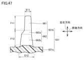 図47は、本実施形態の変形例に係る周辺機器の突出体の構成を示す一部断面模式図である。図47に示されるように、第1突出体631bは、第1先端部661と、第1根元部662とを有している。第1先端部661は、第1根元部662に連なっている。第1先端部661は、第1根元部662よりも薄い。図47に示される断面において、第1先端部661は、左右方向に関して線対称である。第1根元部662は、第1先端部661から離れるにつれて厚みが大きくなる。左右方向において、第1根元部662の高さ(第1根元部高さF12)は、第1先端部661の高さ(第1先端部高さF11)よりも大きい。FIG. 47 is a partial cross-sectional schematic diagram showing the configuration of a protrusion of a peripheral device according to a modified example of this embodiment. As shown in FIG. 47, thefirst protrusion 631b has afirst tip 661 and afirst root 662. Thefirst tip 661 is connected to thefirst root 662. Thefirst tip 661 is thinner than thefirst root 662. In the cross section shown in FIG. 47, thefirst tip 661 is line-symmetrical in the left-right direction. Thefirst root 662 becomes thicker as it moves away from thefirst tip 661. In the left-right direction, the height of the first root 662 (first root height F12) is greater than the height of the first tip 661 (first tip height F11).