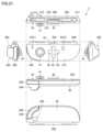 操作面115は、第5開口197から露出しユーザにより押下される、上面ボタン(右)110の操作面である。操作面115は、第1方向R1を向く。操作面115は左右方向に延びる。操作面115の左右方向の長さは、凸部100の天面106の左右方向の長さに比して、1割以上の長さを有してもよく、2割以上の長さを有してもよい。また、操作面115の左右方向の長さは、凸部100の上側面11の左右方向の長さに比して、1割以上の長さを有してもよく、2割以上の長さを有してもよい。Theoperation surface 115 is the operation surface of the top button (right) 110, which is exposed from thefifth opening 197 and is pressed by the user. Theoperation surface 115 faces the first direction R1. Theoperation surface 115 extends in the left-right direction. The left-right length of theoperation surface 115 may be 10% or more, or may be 20% or more, of the left-right length of thetop surface 106 of theconvex portion 100. The left-right length of theoperation surface 115 may be 10% or more, or may be 20% or more, of the left-right length of theupper side surface 11 of theconvex portion 100.