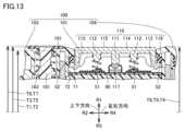 図13は、図11のXIII-XIII線に沿った一部断面模式図である。以下、上面ボタン(右)110およびその周辺の構造について詳述する。本実施形態において、上面ボタン(左)120およびその周辺の構造は、上面ボタン(右)110およびその周辺の構造と、左右方向において実質的に対称である。FIG. 13 is a partial cross-sectional schematic diagram taken along line XIII-XIII in FIG. 11. The structure of the top button (right) 110 and its surroundings will be described in detail below. In this embodiment, the structure of the top button (left) 120 and its surroundings is substantially symmetrical in the left-right direction to the structure of the top button (right) 110 and its surroundings.
