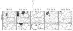 또한, CD166 변화 그래프(C10)는 미니 피그의 옆측두 지방(Lateral temporal fat)에 목표 초음파 에너지에 맞춰 초음파 조사를 1회 조사한 경우 896%의 개선 효과를 보였고, 미니 피그의 옆측두 지방(Lateral temporal fat)에 목표 초음파 에너지에 맞춰 초음파 조사를 4회씩 나눠 조사한 경우 1155%의 개선 효과를 보였다.In addition, the CD166 change graph (C10) showed an improvement effect of 896% when ultrasound was irradiated once at the target ultrasound energy to the lateral temporal fat of the minipig, and an improvement effect of 1155% when ultrasound was irradiated four times at the target ultrasound energy to the lateral temporal fat of the minipig.