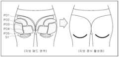또한, 본 개시에서, 프로세서(122)는 획득 장치(10)를 통해 획득된 엉덩이(S1), 가슴(S2) 및 함몰 부위 영역 중 적어도 하나의 외형 정보를 수신한 경우, 엉덩이(S1), 가슴(S2) 및 함몰 부위 영역 중 적어도 하나의 외형 정보를 기반으로 개별 영역 내 꺼짐이 있는 위치를 더 결정할 수 있다. 또한, 본 개시에서, 프로세서(121)는 획득 장치(10)를 통해 획득된 피부 골격 정보를 수신한 경우, 피부 골격 정보를 기반으로 개별 영역 내 꺼짐이 있는 위치를 더 결정할 수 있다. 이때, 프로세서(122)는 초음파 조사부(110)가 꺼짐이 있는 위치에 지방 증식에 상응하는 초음파 에너지를 조사하도록, 초음파 조사부(110)를 더 제어할 수도 있다.In addition, in the present disclosure, if the processor (122) receives at least one of the external shape information of the buttocks (S1), the chest (S2), and the sunken area regions acquired through the acquisition device (10), the processor (122) may further determine the location where there is an off-point within the individual region based on the external shape information of at least one of the buttocks (S1), the chest (S2), and the sunken area regions. In addition, in the present disclosure, if the processor (121) receives the skin skeleton information acquired through the acquisition device (10), the processor (122) may further determine the location where there is an off-point within the individual region based on the skin skeleton information. At this time, the processor (122) may further control the ultrasonic irradiation unit (110) so that the ultrasonic irradiation unit (110) irradiates ultrasonic energy corresponding to fat proliferation to the location where there is an off-point.