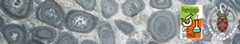 Estas dos imágenes (nícoles paralelos a la izquierda y cruzados a la derecha) muestran una nefelinita olivínica. Lanefelinaen esta roca esintersticialdentro de la matriz (mineral félsico con birrefringencia en tonos grises). La matriz presenta, además, abundante cantidad deaugita(prismas en tono marrón claro) yopacos. Elolivinoaparece en forma de fenocristales (abajo) parcialmente alterados aiddingsita(bordes rojizos oscuros). Destaca, al igual que en las imágenes de muestra de mano de la galería anterior, el habitual índice de color elevado de las rocas foidíticas.