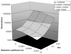 The theoretical basis for this hypothesis derives from studies byFisher (1937) andSlatkin (1976).Fisher (1937) demonstrated that the rate of spread of advantageous alleles depends largely on the diffusion coefficient of dispersal and the selection coefficient. Population subdivision has little effect on reducing the rate of spread as long asNem is fairly large; however, its effects are unclear when migration rates are low (Nem < 1). This work was extended bySlatkin (1976), who modelled the number of generations necessary for an advantageous mutation to spread unidirectionally across a subdivided population in a stepwise manner. Slatkin’s model demonstrates that the strength of selection has a greater effect on the rate of spread of advantageous mutations across subdivided populations than does the organismal migration rate (Fig. 1), and that rare, long-distance dispersal events can greatly enhance the rate of spread. Even in the most extreme case, with gene flow as low as 0.1 migrants per generation, which may often be the case for selfing annuals (Hamrick & Godt 1996), mutations with selective coefficients (s) between 0.05 and 0.01 can spread across 20 populations in 4000–18 000 generations, respectively. This is relatively rapid considering that the duration of herb species has been estimated to average 10 myr (Levin & Wilson 1976). The clear message is that alleles with high selective advantage are able to spread quite rapidly across population systems, even when levels of gene flow are much lower than traditionally thought necessary for species cohesion.