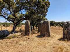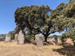 Nestled in a cork oak forest, the stones stand in an elongated group. The hot breeze blows past them and through the trees, making the leaves tremble and rustle slightly. That’s the only sound you hear, along with the buzz of insects. The stones reflect the intense Alentejo sun, giving off their own heat. They have stood here for thousands of years and will be here forever. Or is that a fact?