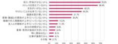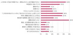 体力の低下や、体型の変化、疾病などの問題を抱えている人が多くいることがわかります。リフレッシュ方法の1位は、「好きな物を食べる」ですが、中年期の生活習慣病の元を作らないよう気をつけたいところです。音楽や体を動かすことは、とてもいい解決方法だと思います。買物も女性にとってはよい気分転換となることでしょう。第ニ思春期の壁を越えていくための自分流の楽しみ方を探して、いつか枠を超えて、人生の楽しみに繋がるようなものに出会えたらいいですね。