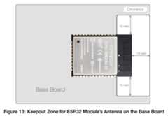 ESP32 Hardware Design Guidelines[キャッシュ]には次のように,アンテナの周囲 15nn は間隔をあけるように記載されています.