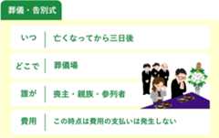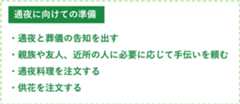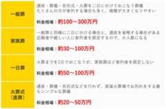 - サポート内容(枕飾り、祭花檀、通夜の手配、僧侶の手配、戒名、火葬場手配など)
