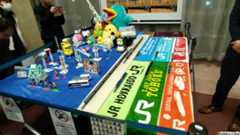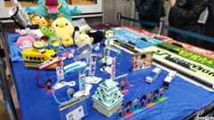 JR各社のマスコットキャラクター人形の他に、手前にはJR西日本の女性社員さん手作りの擬人化キャラが置かれていて、その横には