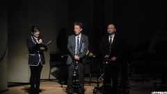 開演15分前にウェルカム・アンサンブルが始まりました。今年は表紙の写真にもあるようにマリンバを中心としたJR各社のパーカッションが集まっての演奏という、ちょっと趣向を凝らしたものでした。曲は情熱大陸。