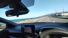30mほど移動して、トンネルを出て海沿いを走るシーンを後追い撮影します。大きく寄るか引きで撮るか悩みどころ。
