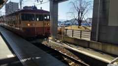 目的は1月12日の運行を最後に色の塗り替えを行うため、間もなく見納めとなる国鉄交直流急行色を纏ったえちごトキめき鉄道の413・455系の編成の撮影です。